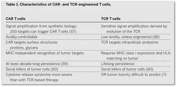 3月23日,《Science》以封面及特刊形式聚焦肿瘤免疫治疗,CAR-T治疗先驱Carl June教授也发表最新综述文章,比较了细胞免疫治疗领域两大疗法TCR-T和CAR-T(如下图)及其研究进展。