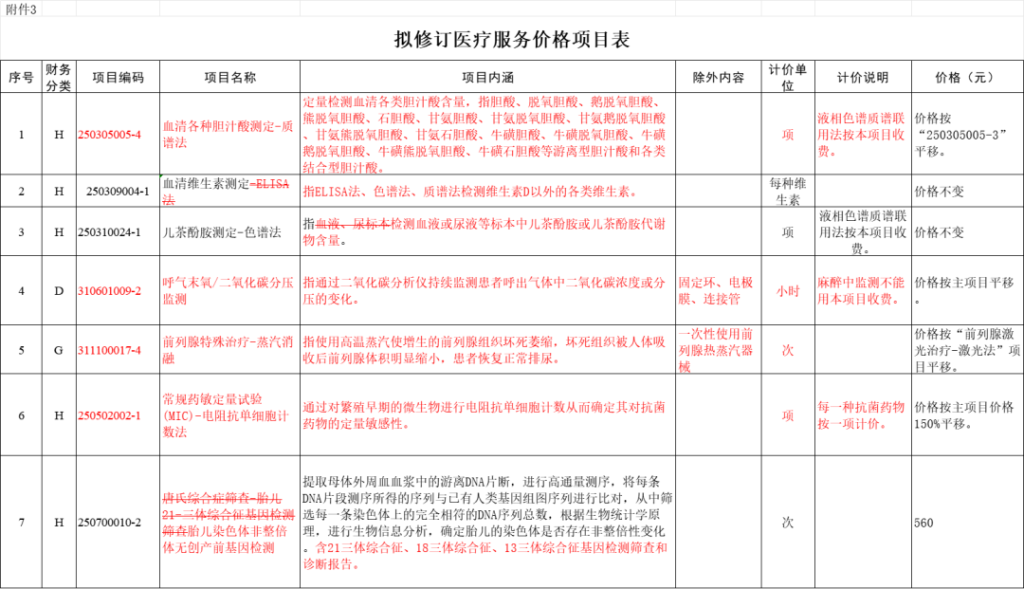 图一 广东省医保局拟修订医疗服务价格项目表